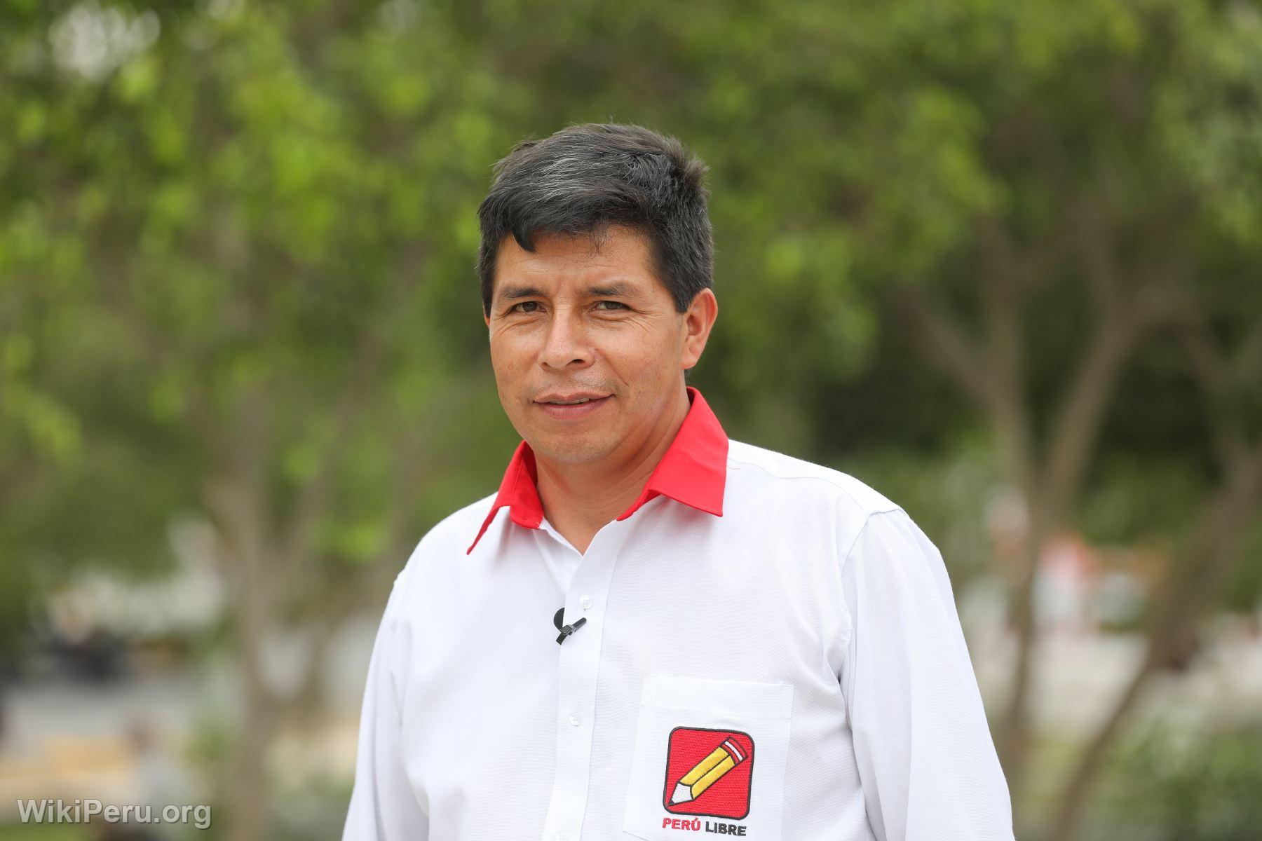 Sa carrière politique a pris un tournant décisif lorsqu'il a été élu président du Pérou en juin 2021, représentant le parti de gauche radicale "Perú Libre". Sa campagne présidentielle a été centrée sur des promesses de réforme agraire, de nationalisation des industries stratégiques et de refonte de la Constitution pour établir un modèle économique plus juste et inclusif. Castillo a remporté les élections avec une marge étroite face à Keiko Fujimori, candidate de droite, dans un contexte de forte polarisation politique et sociale.